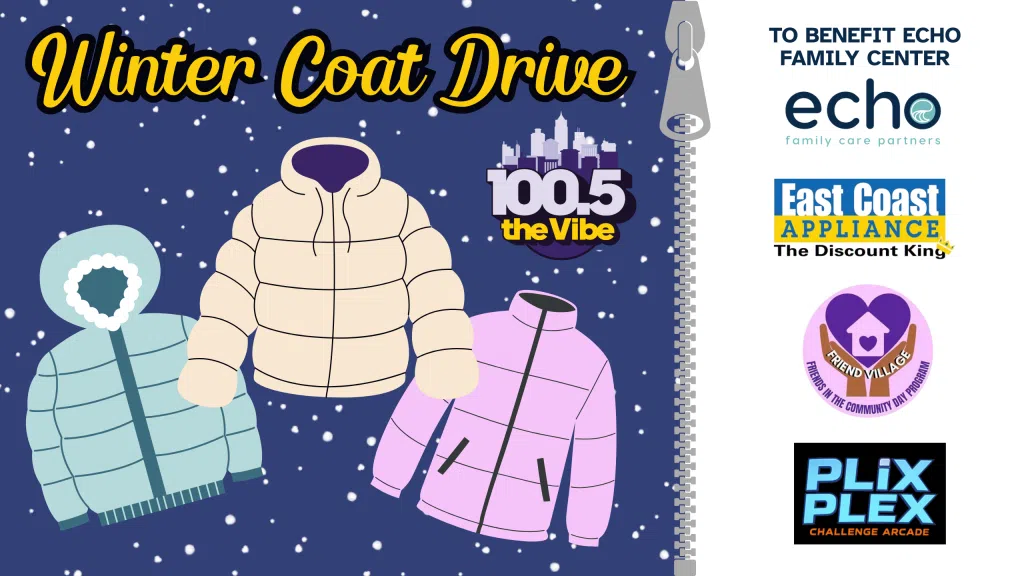 Join 100.5 The Vibe for our Winter Coat Drive as we fill the Vibe’s Coat Closet to benefit the Echo Family Care Center, in partnership with Echo Family Care Partners.